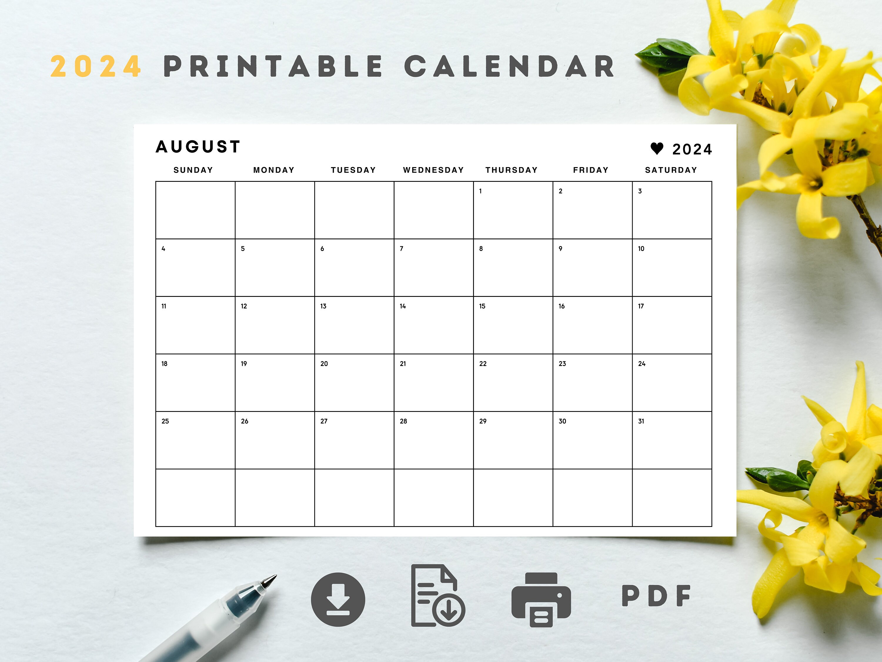 The 2024 calendar shows 2024 on a single landscape a4 page. Use our printable monthly calendar to stay on top of appointments, schedules, and agendas while staying super chic.